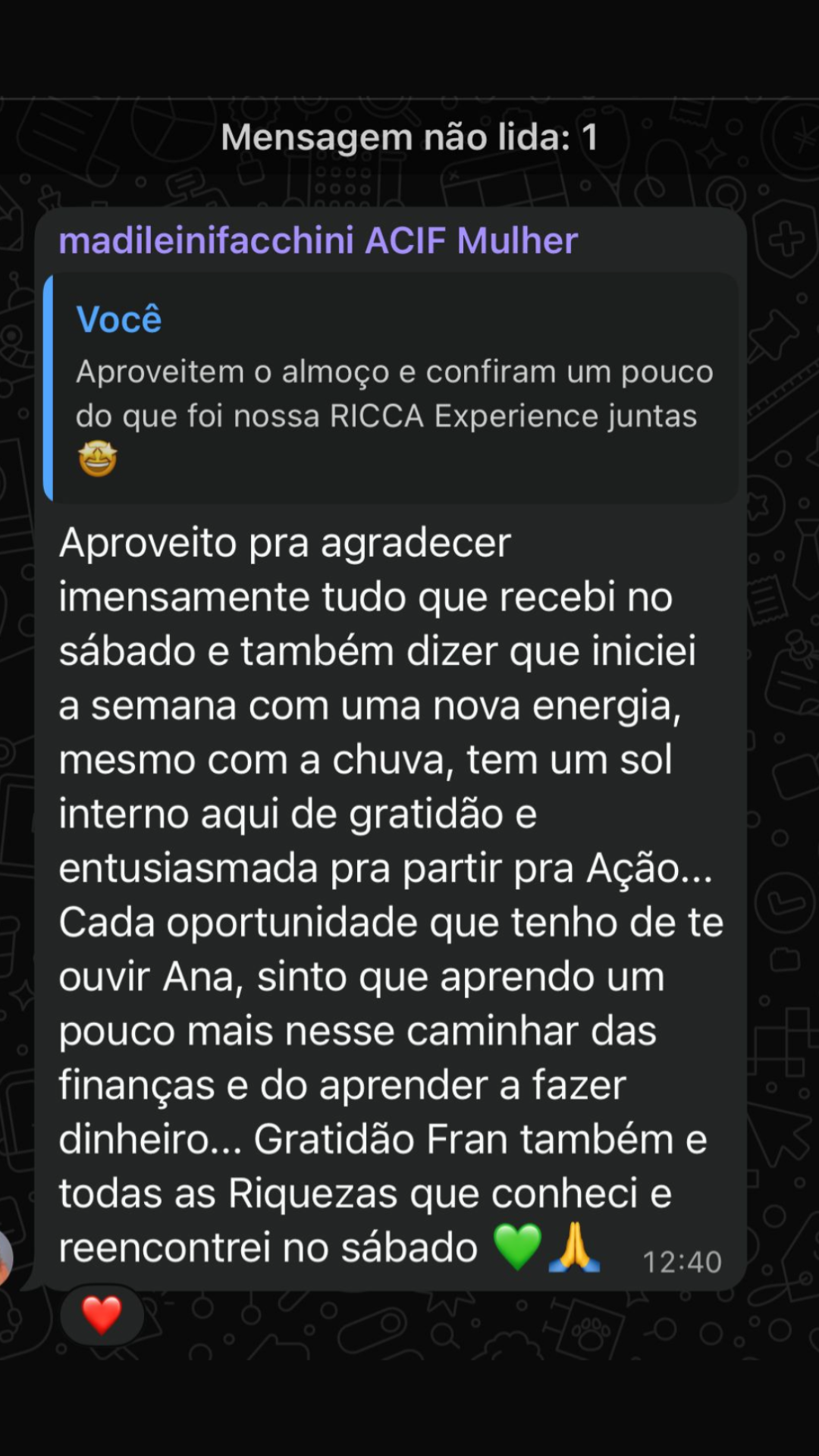 CONFIRA COMO FOI O RICCA EXPERIÊNCIA